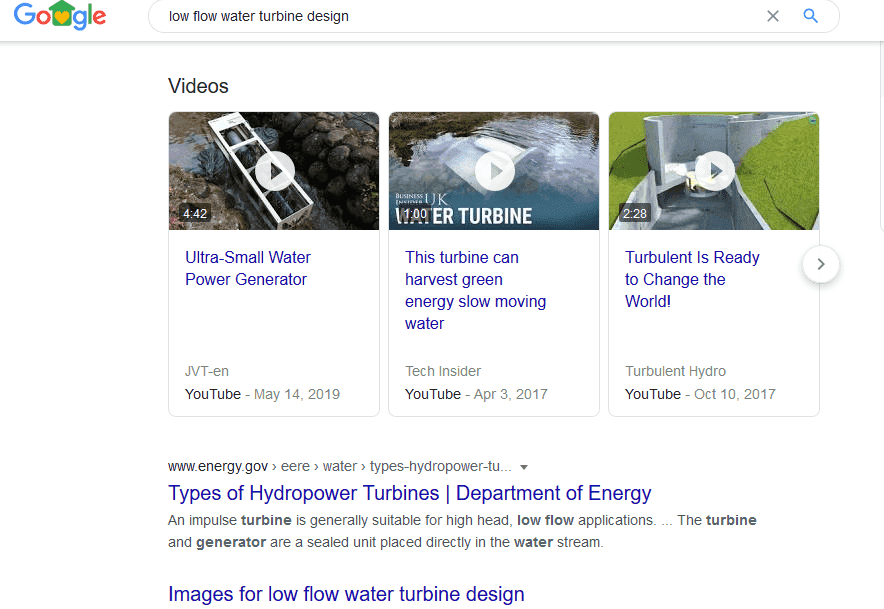 - Another suggests using directed Google searches for resources, specifically mentioning "Low Flow Water Turbine Design."