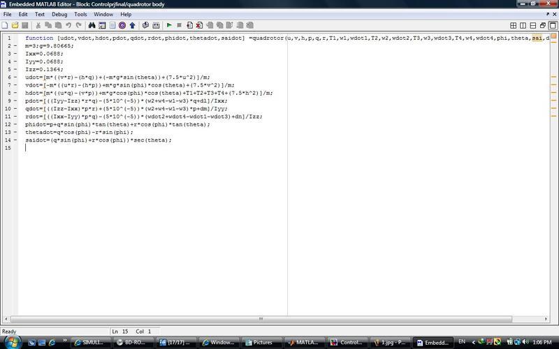 I'm designing a controller for quadroto with MATLAB and I'm using SIMULINK to do this.