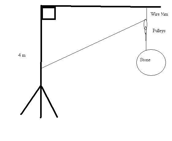 2. I need to find out the moment in the bottom of the vertical beam in order to make the crane stable. Now i should have the max weight, and therefore the weight of the stone. And it should be easier to calculate