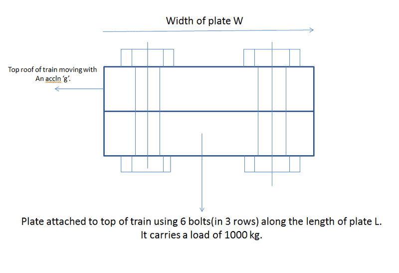 - One participant proposes using the acceleration of the train and the mass of the load to calculate a fictitious force acting on the load, suggesting that this force should be applied at the center of gravity to determine the tensions the bolts must withstand.