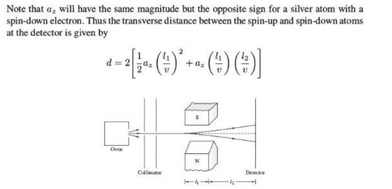 1.1. Determine the field gradient of a 50-em-long Stem-Gerlach magnet that would produce a 1-mm separation at the detector between spin-up and spin-down silver atoms that are emitted from an oven at T = 1500 K. Assume the detector (see Fig. 1.1) is located 50 em from the magnet. Note: While the atoms in the oven have average kinetic energy 3kBT j2, the more energetic atoms strike the hole in the oven more frequently. Thus the emitted atoms have average kinetic energy 2kBT, where kB is the Boltzmann constant. The magnetic dipole moment of the silver atom is due to the intrinsic spin of the single electron. Appendix F gives the numerical value of the Bohr magneton, in a convenient form.