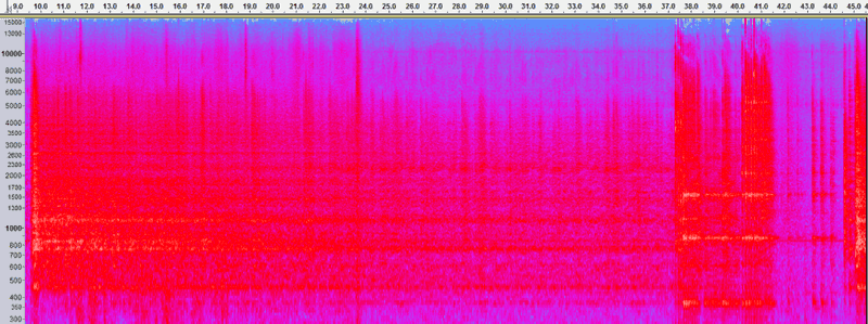 Here is a snapshot of the frequency domain 20 seconds in. It doesn't change much except get slightly quieter overall as the spin goes on.
