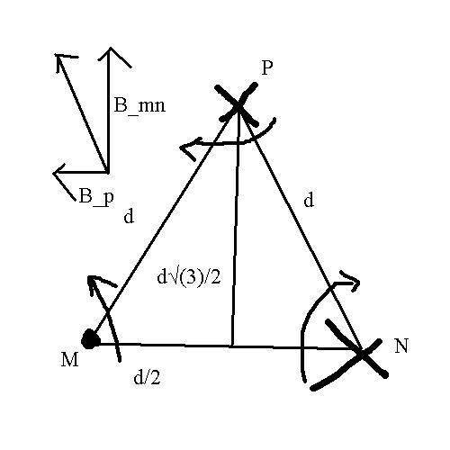 ##B_y = -B_{MN}\sin(30) + B_P\sin(60) = -\dfrac{\mu_0 I}{2\pi d}##