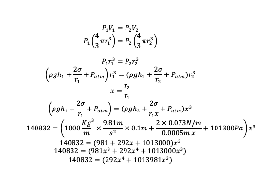 I calculated the pressure inside the bubble multiplying 2 into the given surface tension and the reduce I'm not sure if I should convert the mm to m for the radius or its not required.
