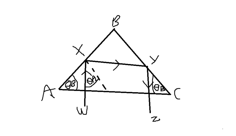In the figure shown, a prism ABC can be used to reflect a laser beam such as WXYZ.