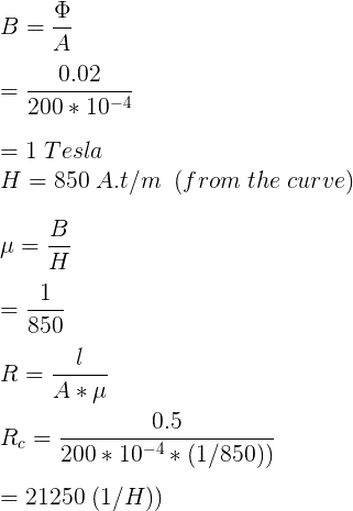 I find the flux density , the permeability and the reluctance of the iron , but then I get stuck .