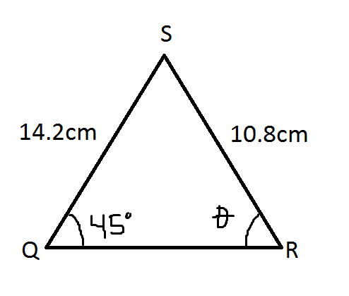 So using the sine law, I found that Θ = 68 degrees. And the I found that the other possibility of Θ would be 112 degrees (180 - 68 = 112). However, the textbook says that the answers are Θ = 68 and Θ = 23. What did I do wrong?
