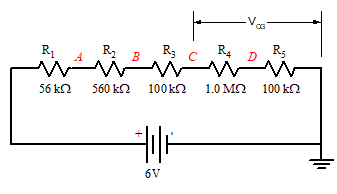 - Determine the voltage at each point with respect to ground in the figure provided.