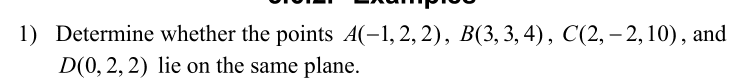 The discussion revolves around determining whether a set of points lies on the same plane, specifically examining the relationships between vectors formed by these points. The subject area includes vector geometry and linear dependence.