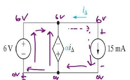 C) Is the voltage negative (-6V in the first equation)? The dependent voltage source polarity is different than the 6V polarity so I guess I can see that but is that something I'll have to remember rather than understand?