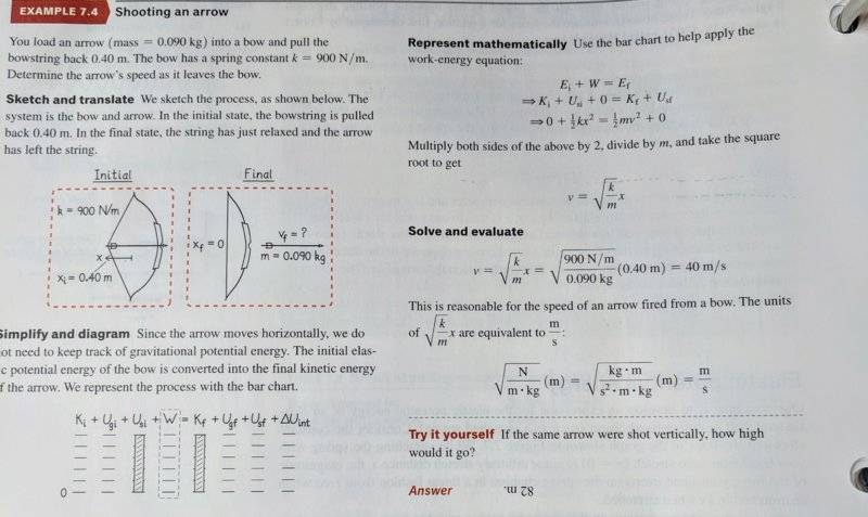 As you see in the other image I attached, in one scenario I took into account the kinetic friction (which did not lead me anywhere since I needed to know the velocity of the arrow once in the air), and then in another scenario I did not take it into account (which led me to the wrong answer of about 81 meters). The actual answer is 28 meters.