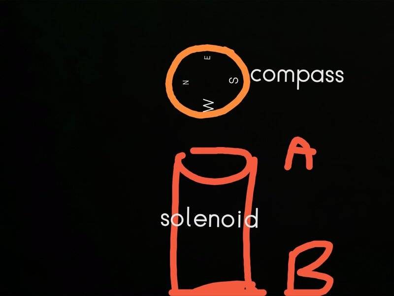 The discussion revolves around determining the north and south poles of a solenoid using a compass. Participants explore the behavior of a compass needle in relation to the magnetic field generated by the solenoid and the implications of compass orientation.
