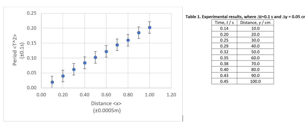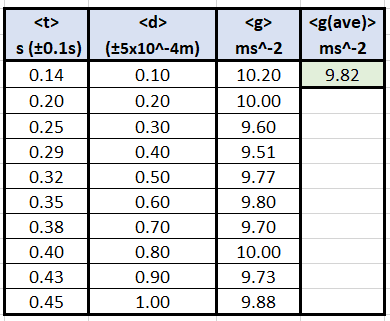 a) Use the results to calculate an experimental value of g and compare this to the expected value.