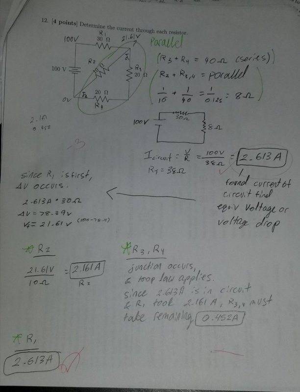 - One participant expresses confusion over the calculation of current through resistors R2, R3, and R4, noting a specific correct value for R1.