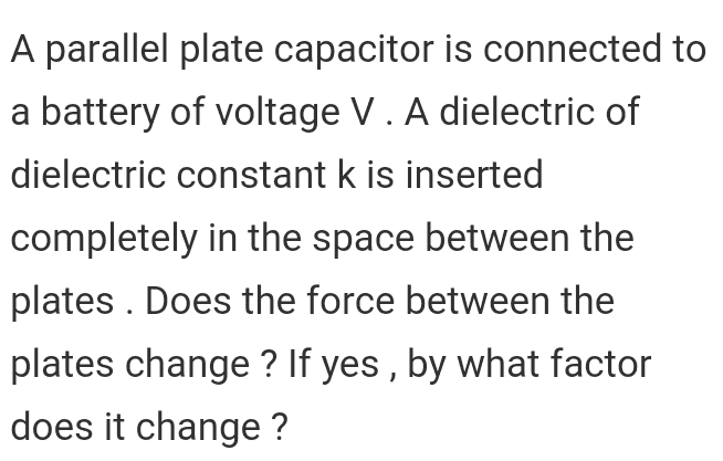 So , force F increases by a factor "k'" to become kF on insertion of the dielectric while plates are connected to battery .