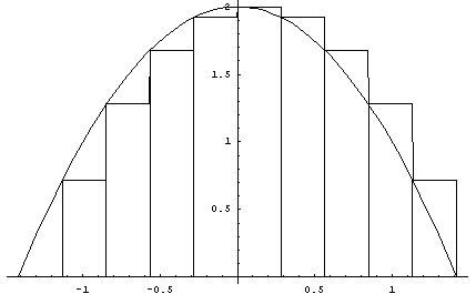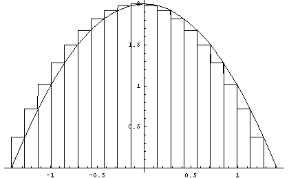 Finally, here's an example of using 20 rectangles with right-hand endpoints. You can see that the area is more accurately represented with more rectangles.