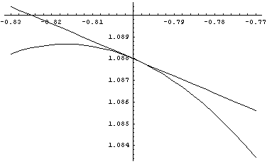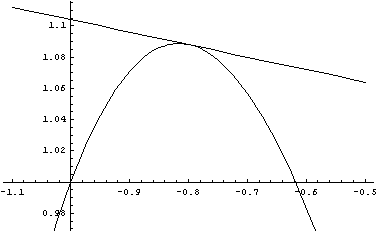 Is the straight line not a tangent line to the function at $-4/5$ simply because it also intersects around $1.6$?