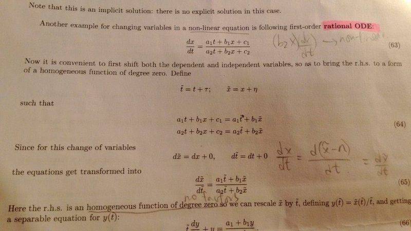 The discussion revolves around a conceptual problem in differential equations, specifically regarding the interpretation of certain expressions and notations used in the context of differentiation. Participants are trying to understand the implications of the equations presented in the notes, particularly the meaning of terms like dX = dx + 0 and dT = dt + 0.