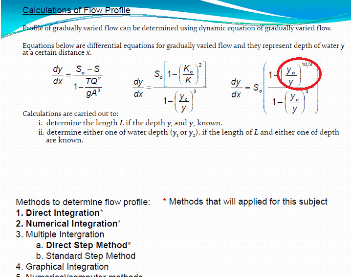 The discussion revolves around the derivation of a formula related to the differential equation of gradually varied flow in open channel hydraulics. Participants explore the relationships between various parameters involved in the equations, particularly focusing on the constants and variables used in the context of flow equations.