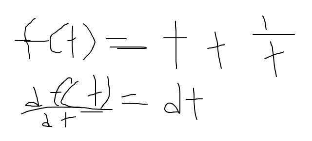 I took dt of both sides. The part that confuses me is when you take the derivative of 1 over t . The one becomes a 0 and the t becomes a dt. Just want to make sure I did that right.