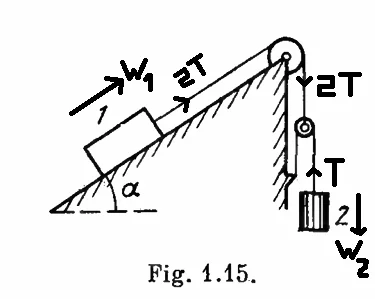 1) You need to figure out how many degrees of freedom the system has. The weight can move down (or up); the pulley can move down (or up); and, then weight can move up the ramp (or down).