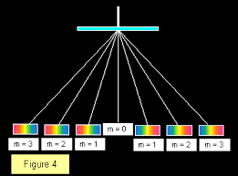 There is an ongoing exploration of the relationships between the orders of the spectra and their respective angles. Some participants have provided expressions for the angles in terms of the grating spacing, while others are still seeking clarification on the definitions and implications of the terms used in the equations.