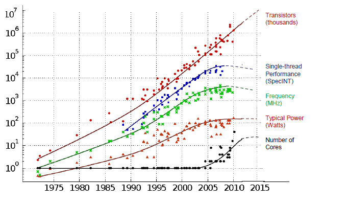 Participants highlight various assumptions and conditions, such as the unpredictability of discoveries at higher energy levels and the differences in efficiency dynamics between particle accelerators and microprocessors.