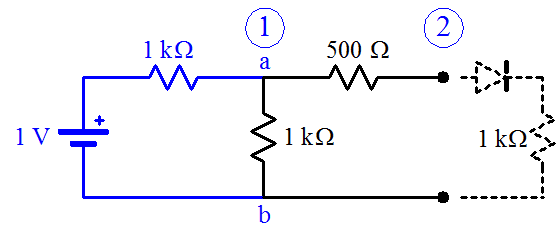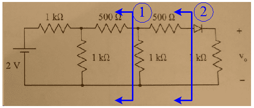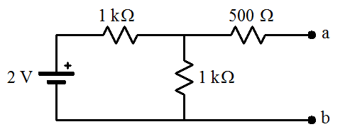 gneill said:No. How do you arrive at 2 kΩ? How come the original 2 V hasn't been divided by the voltage divider consisting of the two 1 kΩ resistors? This is the circuit that you are starting with for this first part: