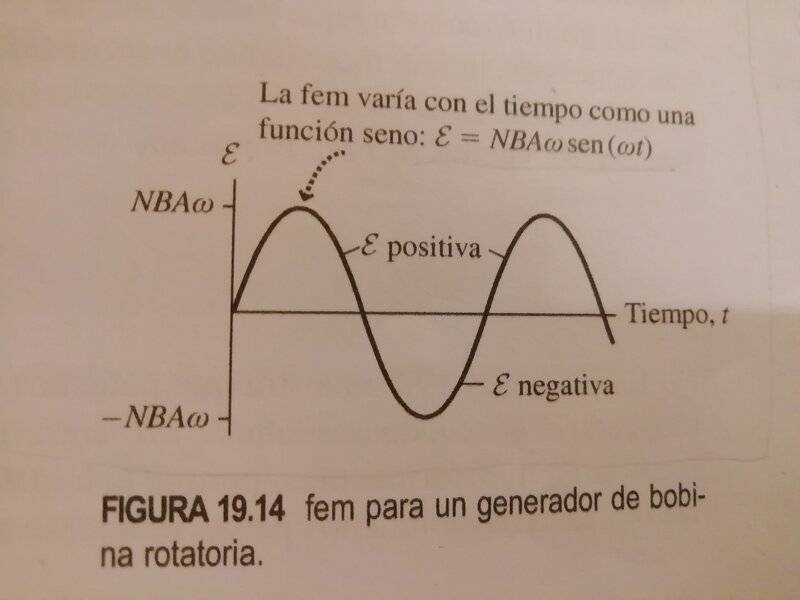 (...) How does an electric generator work? We know from Faraday's law, that the induced current requires a variable magnetic flow. With a uniform field, we have the equation ##\Phi=BA\cos{\theta}## for the flow that goes through each turn of a coil (a moving magnet induces a current in a coil ) The magnetic field ##B## and the area ##A## are constant, but as the coil turns, the angle ##\theta## changes. If the coil goes round with a constant angular speed ##\omega##, then we know from a previous chapter that ##\theta=\omega\,t##. Thus, by Faraday's law, the emf will be