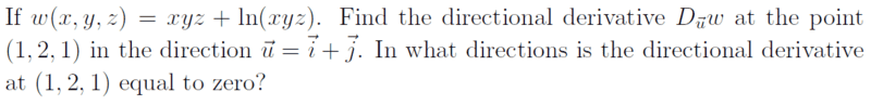At point (1, 2, 1), the ##\nabla w=<3, \frac{3}{2}, 3>##