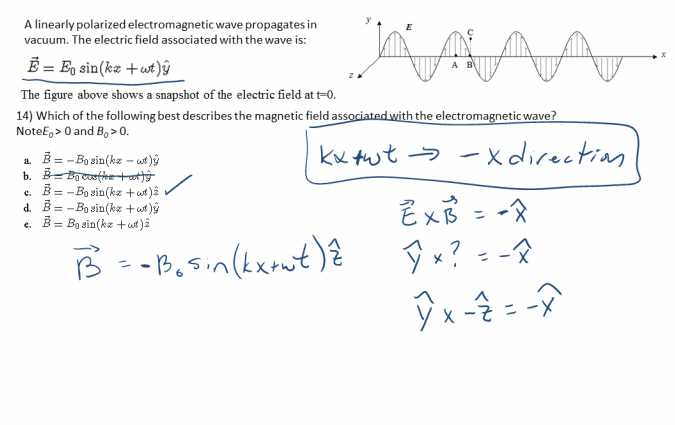 - Participants discuss the perpendicular relationship between the electric and magnetic fields and question how to choose the direction of the magnetic field. There is also exploration of the implications of the wave traveling in the -x direction and how this relates to the mathematical representation of the wave.