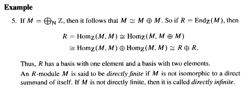 I need some help in order to fully understand Bland's Example on page 56 concerning directly finite and directly infinite R-modules ... ...