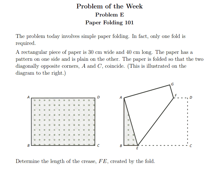 The discussion revolves around paper folding techniques, specifically focusing on a scenario where the length AG is 30cm. Participants explore mathematical relationships and geometric properties related to the folding process, employing the Pythagorean theorem and algebraic manipulation to derive equations involving the variable x.