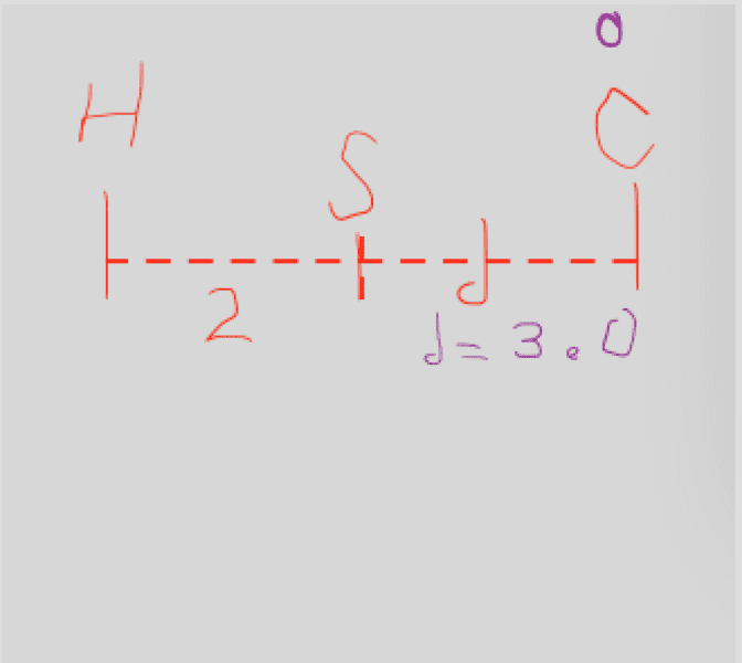 The distance between H and S is 2 miles and the distance between S and C is represented by D.