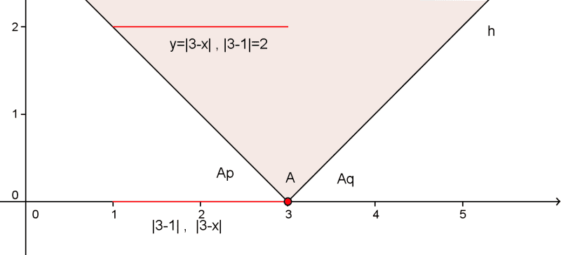 In the vigilink graph (which takes a very long time to load), you are graphing y = |3 - x|. The V shape of this graph is what I was talking about above.point said:, introduces the new coordinates y perpendicular to the x-coordinate and cut the number 0 (plane), the number of y is transferred to the y-coordinates, lines (the first parallel to the y-coordinate, and on it is a point that is the number a , the second is parallel to the y-coordinate, and on it is a point that is the number x) is cut from the line (which is parallel to the x-coordinate and it is the point which is also the number y) gave the points in the plane (x, y) and (a, y) of the connecting point is obtained straight line
