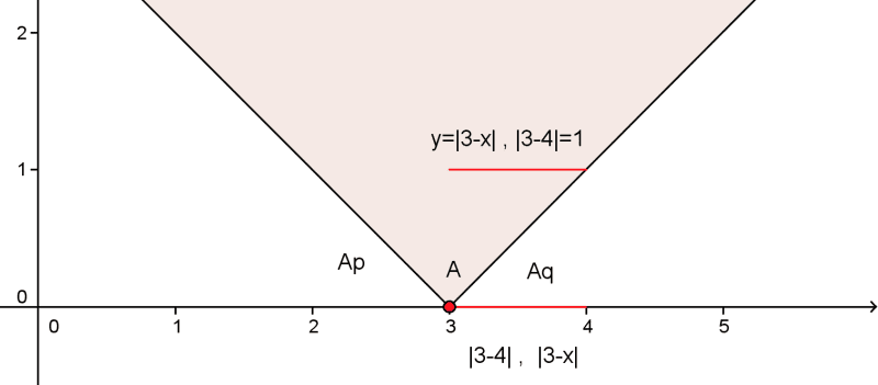 x=4 , red color straight , x- coordinates ( |3-4| , |3-x| ) is mapped to plane (˙y=|3-x| , |3-4|=1 )