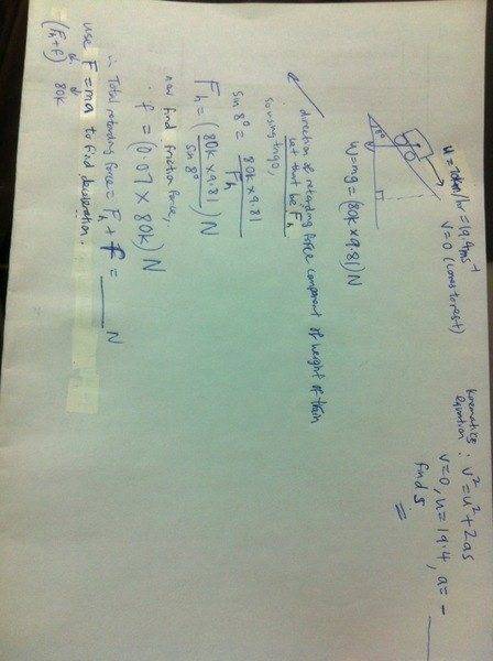 My lecturer hinted that its the height distance I calculate, then use trigonometry to calculate the distance traveled up the gradient of 8degrees.