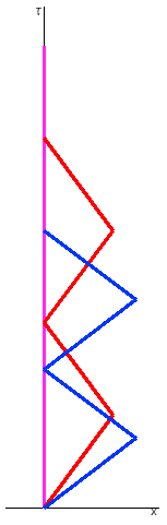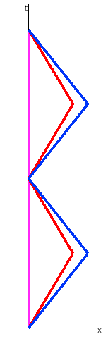 Just to illustrate @Dale's point, consider a kind of repeated twin paradox. We have triplets, one who stays at home (purple), one who travels at 0.6c (red) and one who travels at 0.8c (blue). At time zero the travellers set off and return simultaneously at some later time, shake hands, turn around and repeat their trips. Below is a regular Minkowski diagram (left) and an Epstein diagram (right)