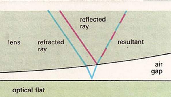 The discussion centers on the application of Newton's ring formula, specifically the equation 2t=nλ, where t represents the thickness of the air film, n is the number of rings counted, and λ is the wavelength of light. The participant asserts that the correct diagram for this scenario involves vertical light paths, but questions the impact of the curved surface on the incident and reflected angles. They clarify that when two glass surfaces are in contact, no reflection occurs, which implies an absence of an air gap.