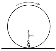 Given a cylinder is rolling purely and a man with mass m is attatched to a point in the circumference of the cylinder. As the man approaches the lowest point he jumps vertically up. Will the velocity of the cylinder increase, decrease or remain same after the man is detached and is in motion as stated above?Homework Equations