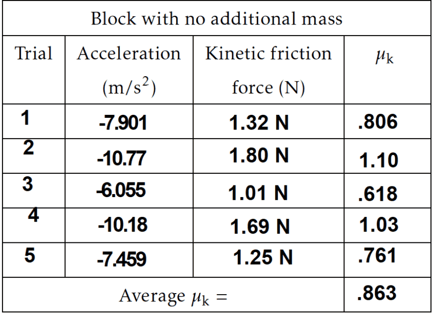 - Does the coefficient of kinetic friction depend on speed? Explain, using your experimental data.