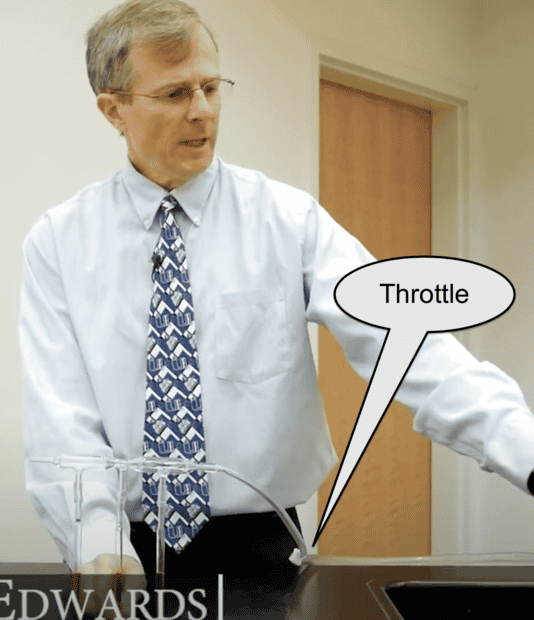I'm talking about the throttle you are pointing out. If the feed tube has area ##A_{tube}##, what is the area of the "pinched" section.Sailor Al said:I think I specified that in the original question. I suggested the diameter of A was 1.6 cm and B, 0.5 cm, so the cross-section area of A is 2.01 cm2 and of B is 0.196 cm2. So B is ~10% of A.