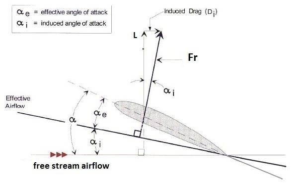 1. Does it mean for case without effective airflow(zero induced downward velocity), Fr is perpendicular to freestream airflow,so drag is zero?