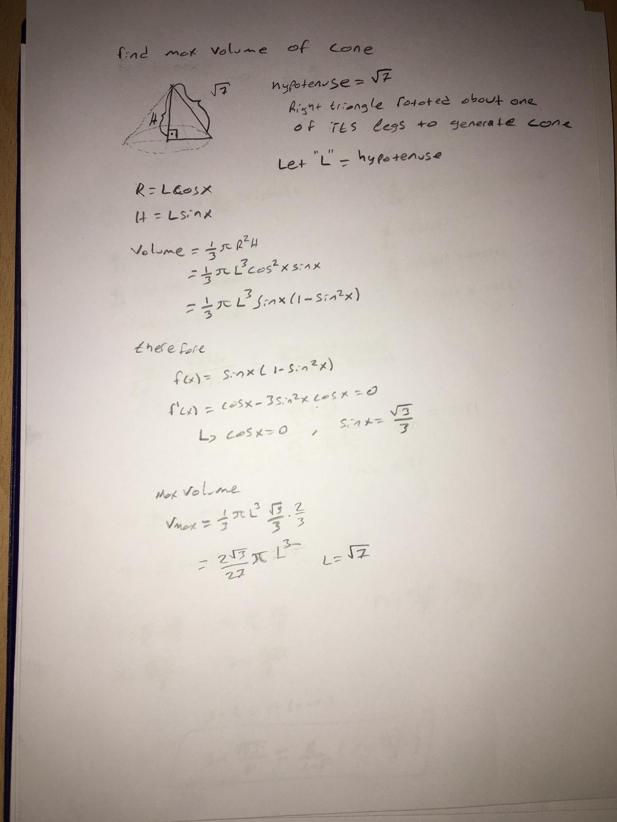 - There is a discussion about maximizing the volume of a cone, with one participant suggesting a different formula for volume than what was initially used.