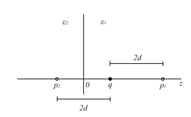 \\\\E_{2}\left(z\right)\left|_{s=0,z<0}\right.=-\nabla\Phi_{2}\left(z\right)\left|_{s=0,z<0}\right.=-\frac{d\Phi_{2}\left(z\right)\left|_{s=0,z<0}\right.}{dz}=-\frac{1}{2\pi}\frac{1}{\left(\varepsilon_{1}+\varepsilon_{2}\right)}\frac{q}{\left( d-z \right)^{2}}\hat{z}$$