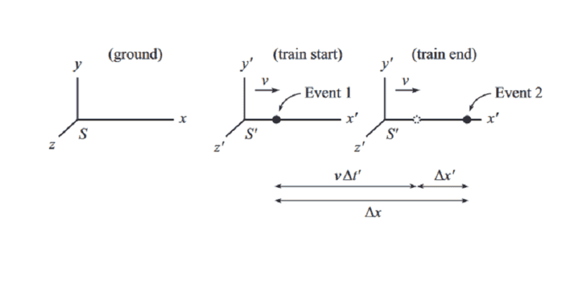 By 2 events I mean ##x'## position and ##v ∆t## represents the second event the first object moving.