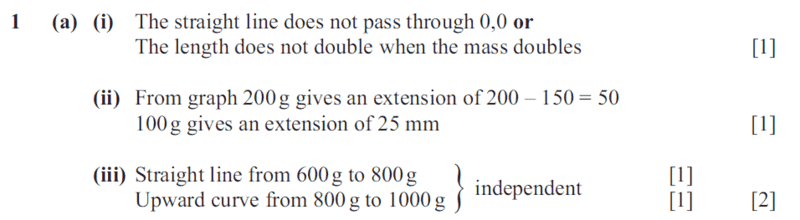 The mark scheme would suggest that the spring should continue to stretch to infinity as more weights are added?