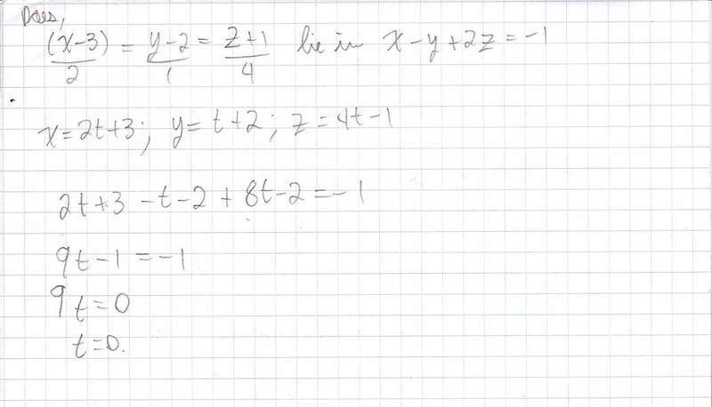 See figure for problem statement. It asks if a given line lies in a given plane.