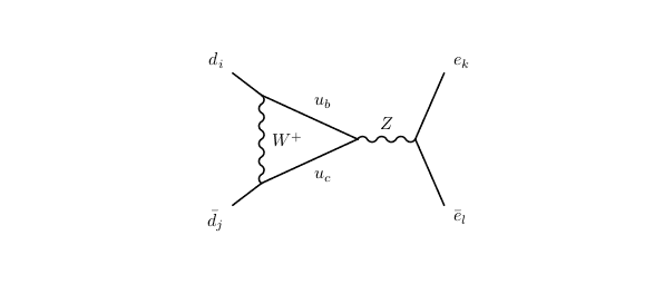 It's written in QFT books, see for instance George_W._S. book "Flavor Physics and the TeV Scale" that the following Feynman diagram (1)
