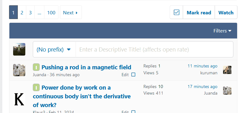 Wow!berkeman said:Hah! I never saw that big button before! I just always started filling out the empty line at the top of the thread list -- I guess either way works.